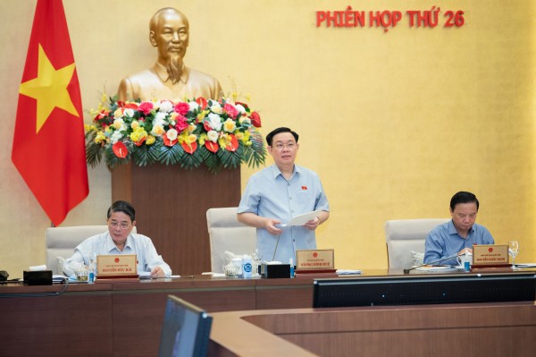 Chủ tịch Quốc hội Vương Đình Huệ phát biểu tại phiên họp