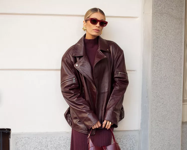| Diện cả set đồ gam màu đỏ rượu vang gồm quần da ống đứng, áo len và áo khoác dạ giúp nàng trông ấm áp và nổi bật trên phố mùa đông. Phụ kiện boots mũi nhọn, túi xách, khăn lụa và mắt kính góp phần tạo nên outfit thanh lịch, phù hợp để đi làm, đi tiệc... |